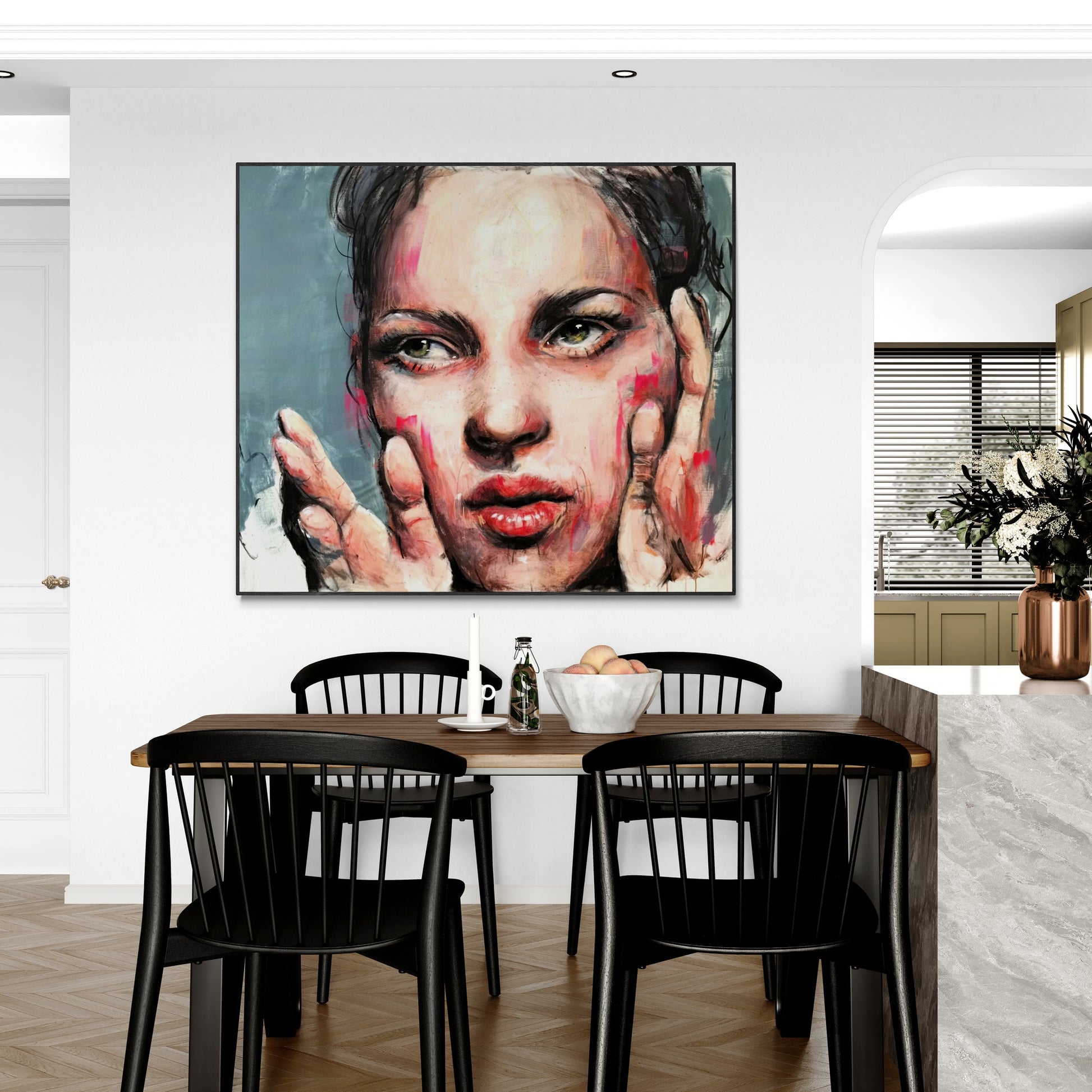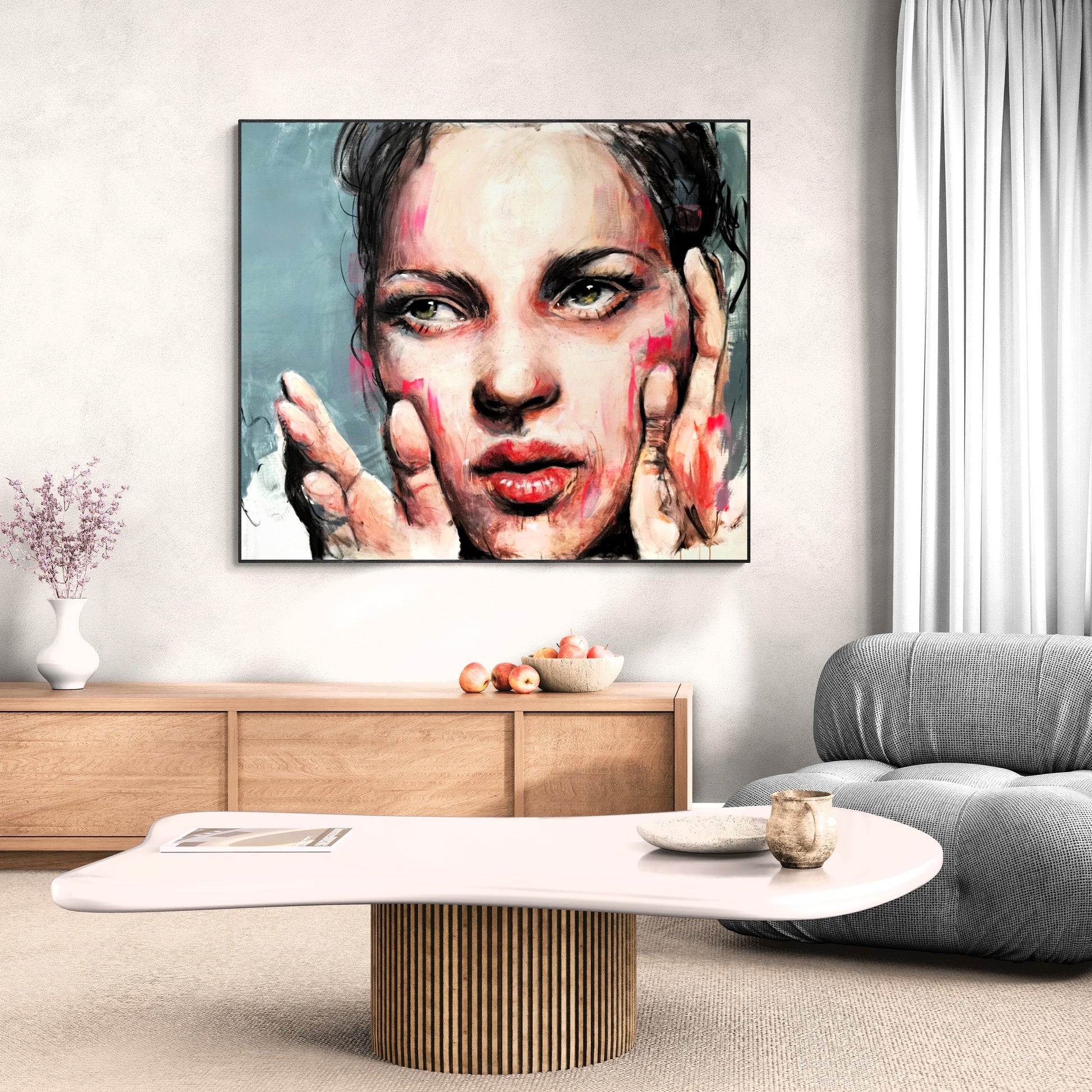 The canvas is about 10 centimeters larger than the dimensions shown to allow for a frame and is shipped rolled in a tube to preserve the quality of the painting.