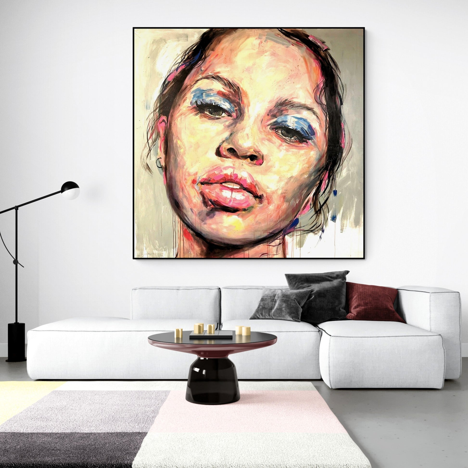 The canvas is about 10 centimeters larger than the dimensions shown to allow for a frame and is shipped rolled in a tube to preserve the quality of the painting.