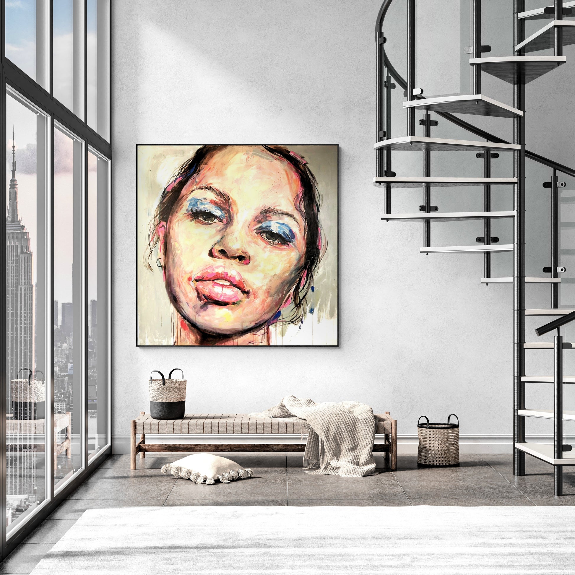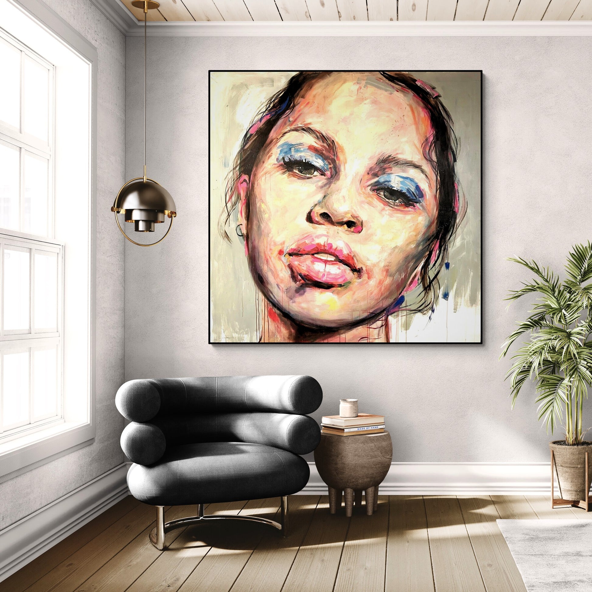 The canvas is signed by the author on the back and comes with a certificate of authenticity. The canvas is about 10 centimeters larger than the dimensions shown to allow for a frame and is shipped rolled in a tube to preserve the quality of the painting. Shipping is free of charge and ships within one business day.