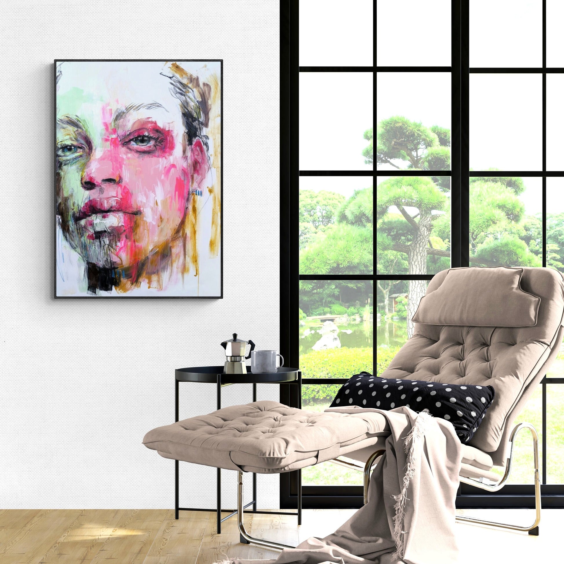 The canvas is signed by the author on the back and comes with a certificate of authenticity. The canvas is about 10 centimeters larger than the dimensions shown to allow for a frame and is shipped rolled in a tube to preserve the quality of the painting. Shipping is free of charge and ships within one business day.
