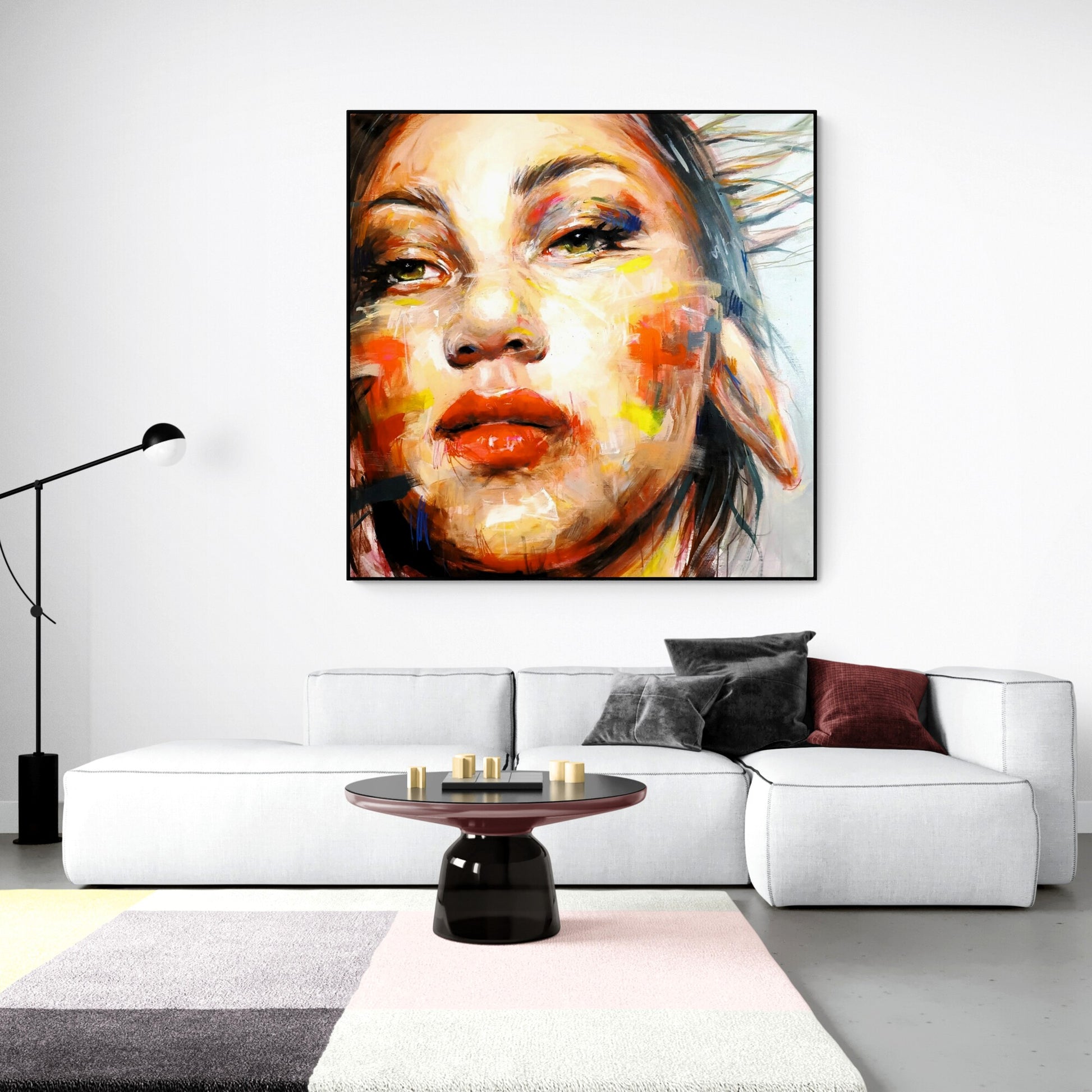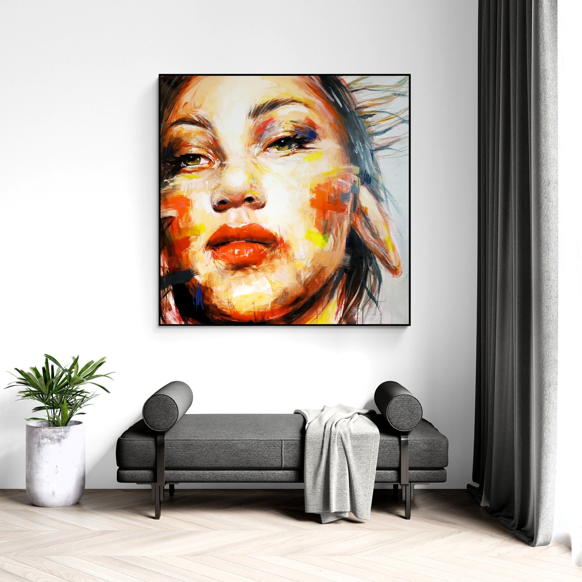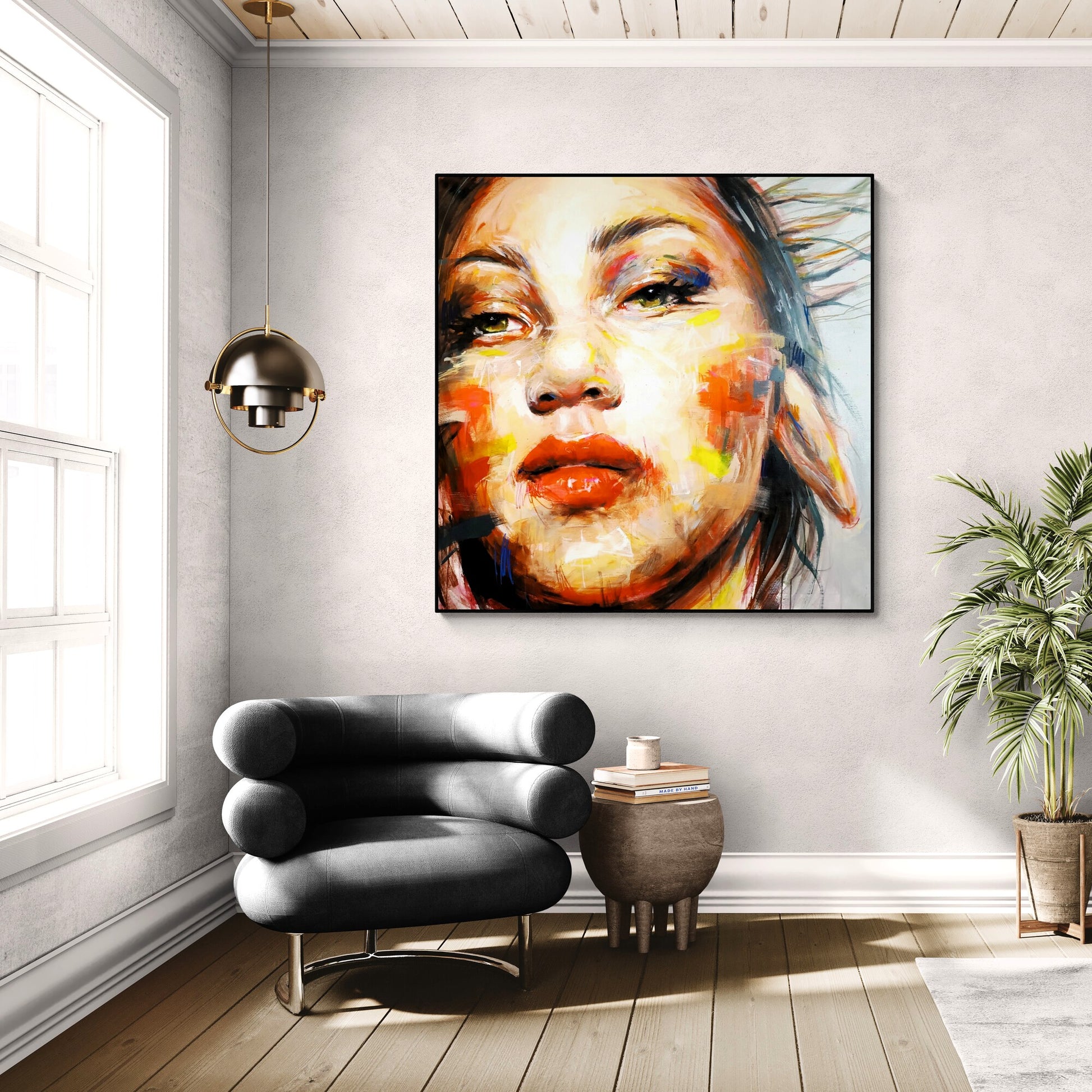 The canvas is signed by the author on the back and comes with a certificate of authenticity. The canvas is about 10 centimeters larger than the dimensions shown to allow for a frame and is shipped rolled in a tube to preserve the quality of the painting. Shipping is free of charge and ships within one business day.