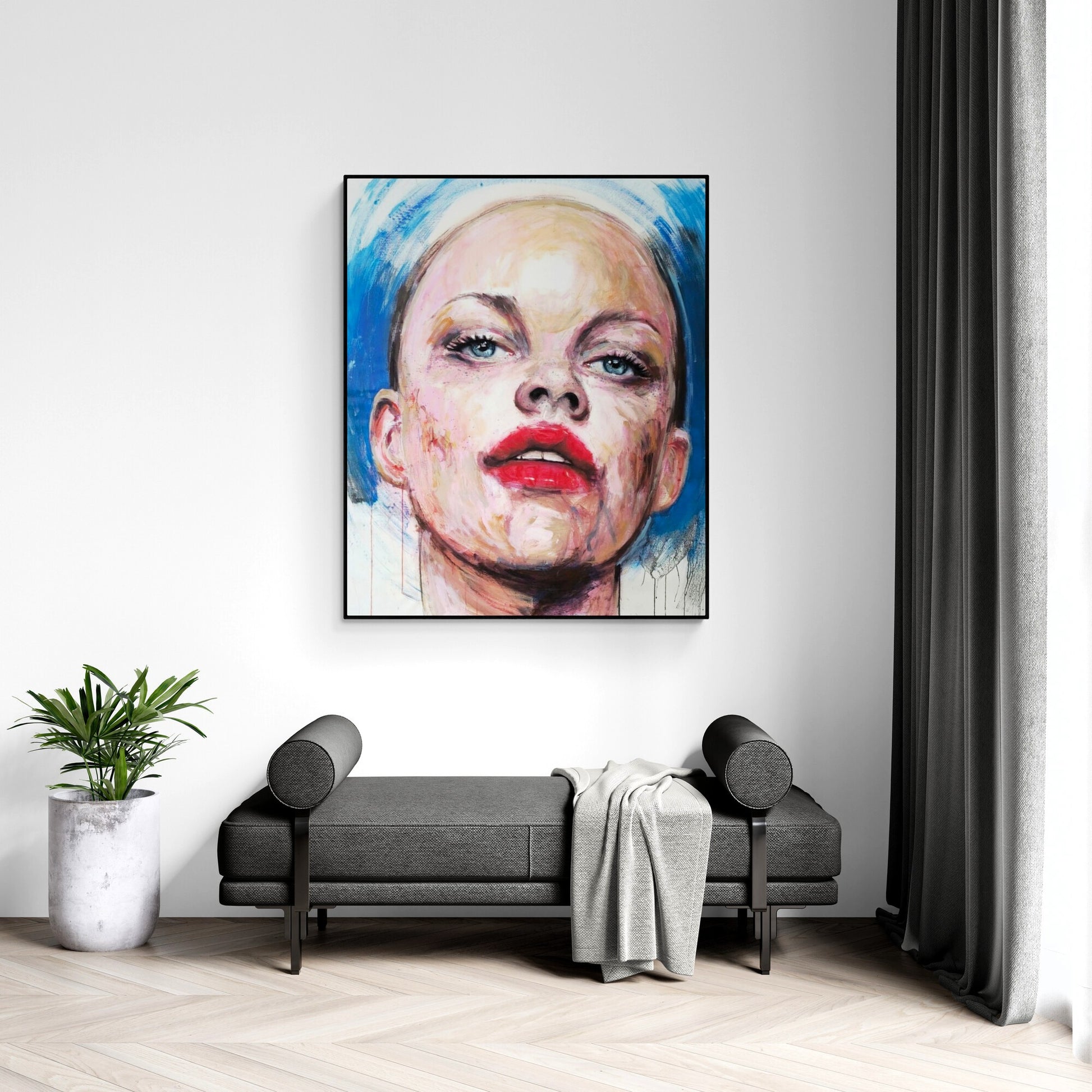 The canvas is signed by the author on the back and comes with a certificate of authenticity. The canvas is about 10 centimeters larger than the dimensions shown to allow for a frame and is shipped rolled in a tube to preserve the quality of the painting. Shipping is free of charge and ships within one business day.