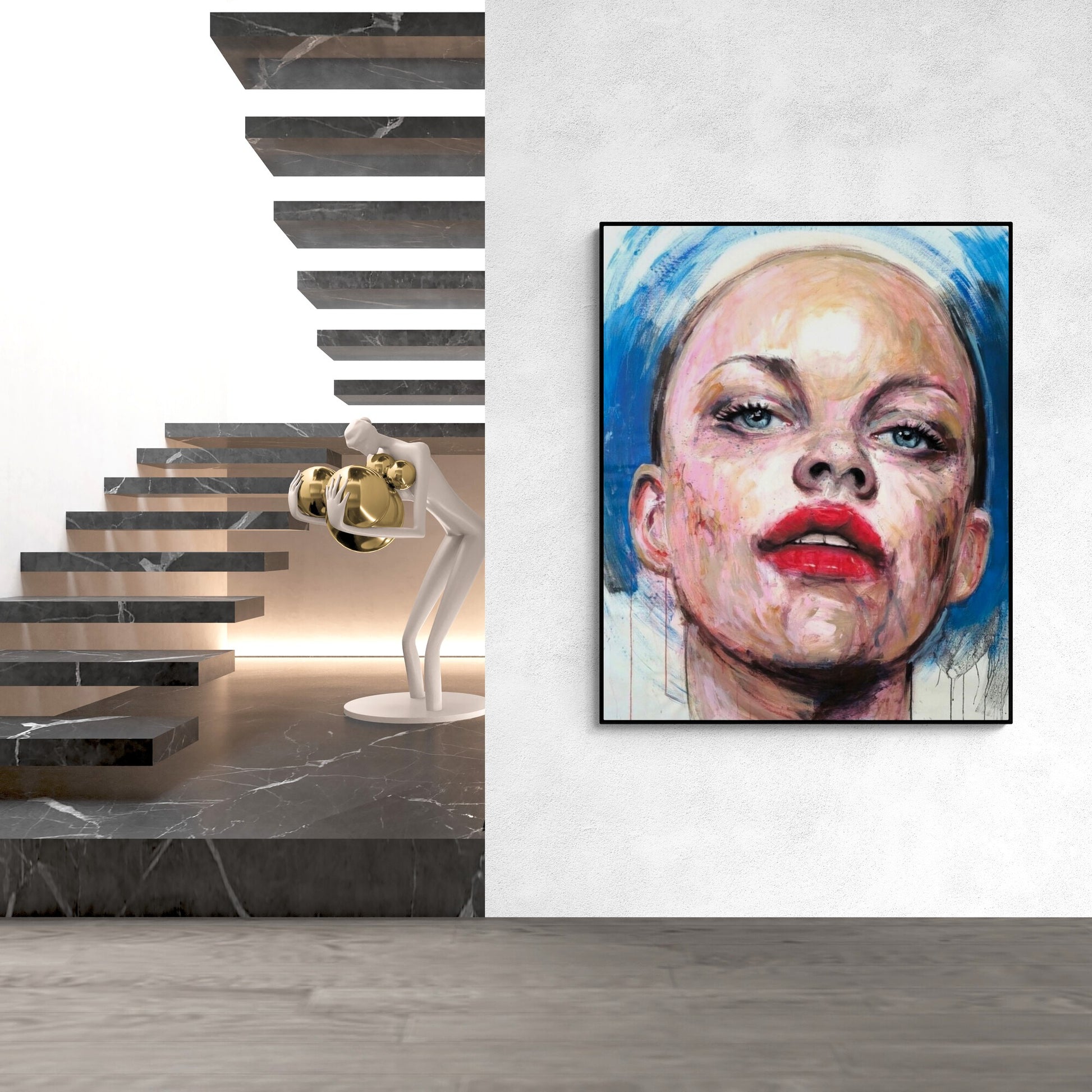 The canvas is about 10 centimeters larger than the dimensions shown to allow for a frame and is shipped rolled in a tube to preserve the quality of the painting.