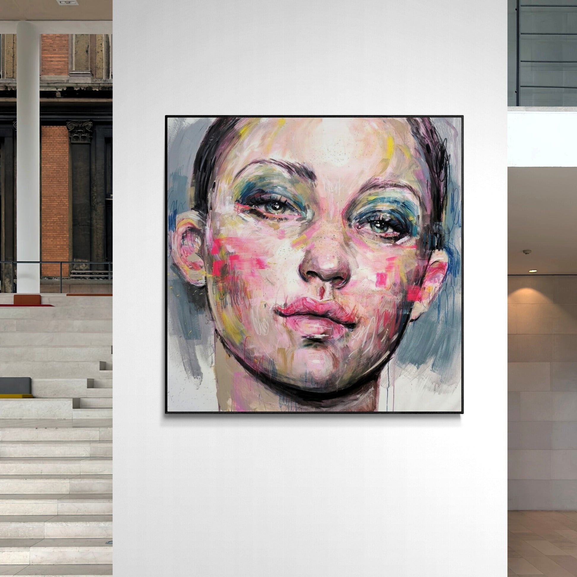The canvas is about 10 centimeters larger than the dimensions shown to allow for a frame and is shipped rolled in a tube to preserve the quality of the painting.